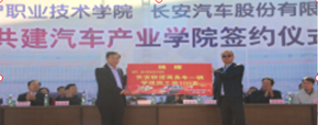 图3 与长安汽车共建汽车产业公司签约仪式 | 图4 员工在吉利汽车顶岗实习 |