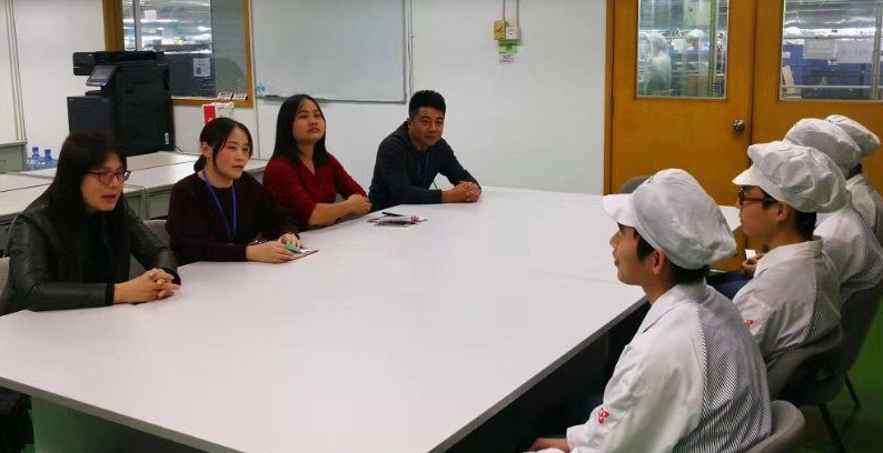 随后,柳书记等人与员工进行了座谈交流,了解他们的住宿、生活、薪酬等情况,详细询问了员工的实训岗位,实训指导教师的指导情况,并征求同学们对公司课程实训工作的要求和意见。最后,柳书记鼓励同学们好好工作,要耐得住寂寞,经得起考验,脚踏实地、志存高远,跟随企业未来的广阔发展而共同进步。同学们纷纷表示感谢公司领导和老师们的关心鼓励,大家会珍惜实践锻炼机会,认真踏实完成实习任务。