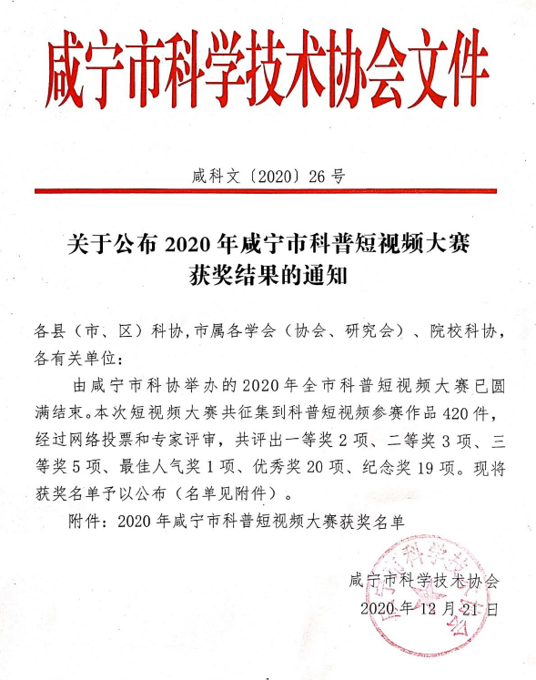 永利集团304官网智能装备系作品在咸宁市科普短视频大赛中获奖