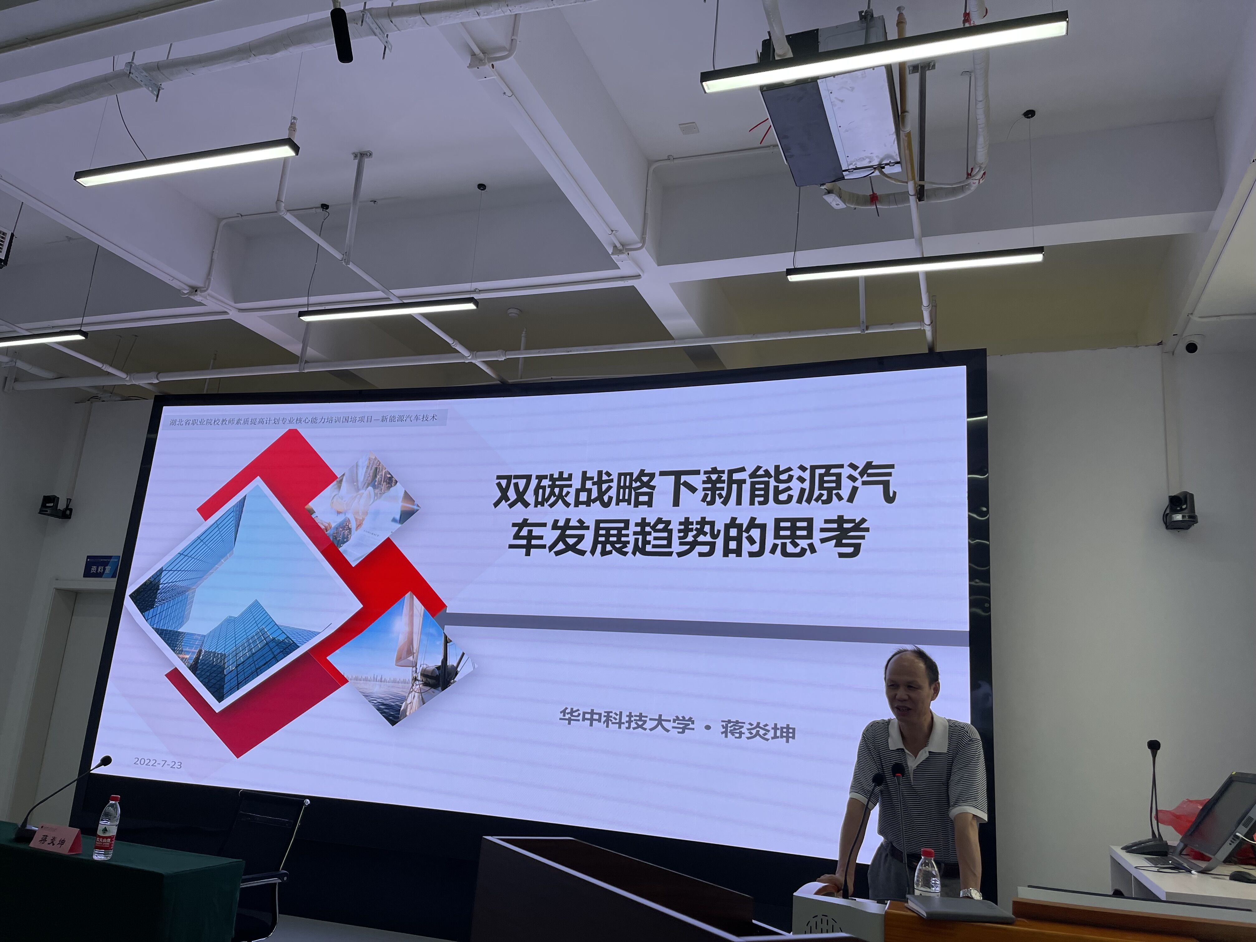 蒋炎坤作题为《双碳战略下新能源汽车的发展战略思考》的专题讲座,重点围绕能源结构调整、重点领域减排、碳捕集与封存、生态固碳技术和碳回收再利用等方面进行介绍,并列举方法探究,给参训学员们点亮了一盏“明灯”。