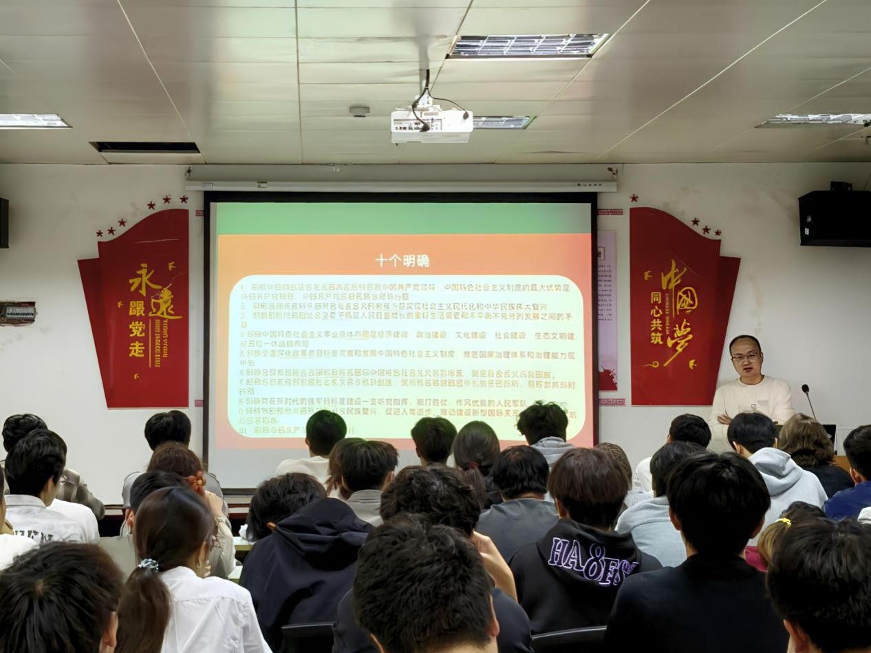 永利集团304官网员工党支部宣传委员吴世杰,以“习近平新时代中国特色社会主义思想”为主题,从“十个明确”“十四个坚持”系统阐释新时代坚持和发展中国特色社会主义的核心要义。结合电教片《路》引导学员感悟中国道路与制度优势,并围绕“中国特色社会主义制度优越性体现在哪些方面”组织讨论,用高铁奇迹、脱贫攻坚、疫情防控等鲜活事例激励大家坚定制度自信,砥砺初心使命,奋发向前。