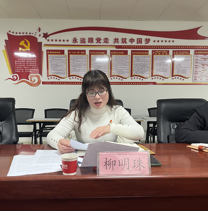 柳明珠代表公司党总支汇报了2025年深入贯彻中央八项规定精神学习教育查摆问题整改情况、2024年度民主生活会查摆问题整改情况,并代表公司党总支作全面对照检查。