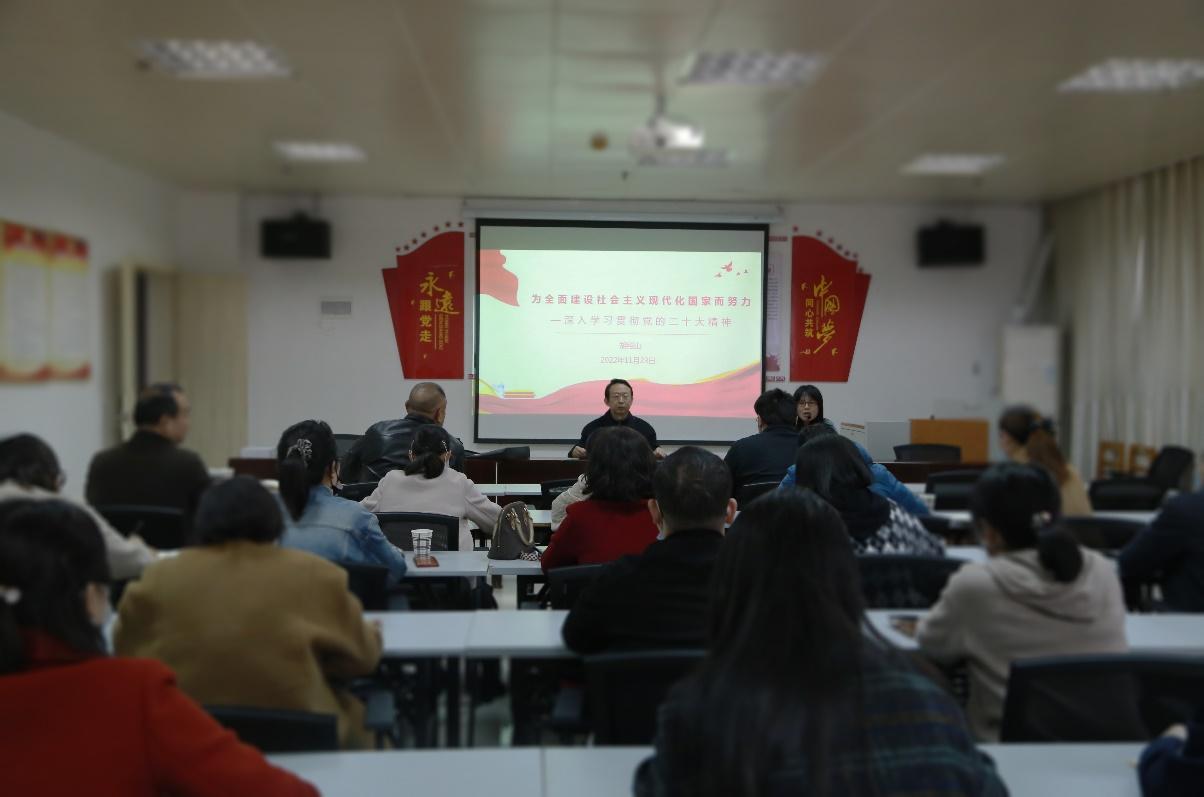 11月23日至24日,学习贯彻党的二十大精神公司党委宣讲团成员、党委委员、总会计师胡绍山分别在理工楼904会议室、虚拟仿真大楼二楼报告厅,为计财处和资产管理处全体党员干部,永利集团304官网党员干部,以及全体员工干部和入党积极分子开展专题讲座,宣讲党的二十大精神。