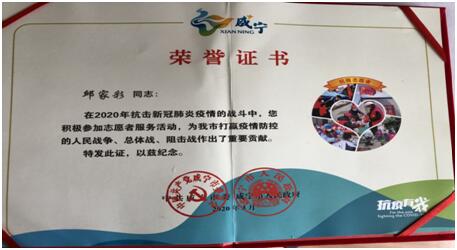 图2 邱家彩获得抗疫“最美战士”称号
