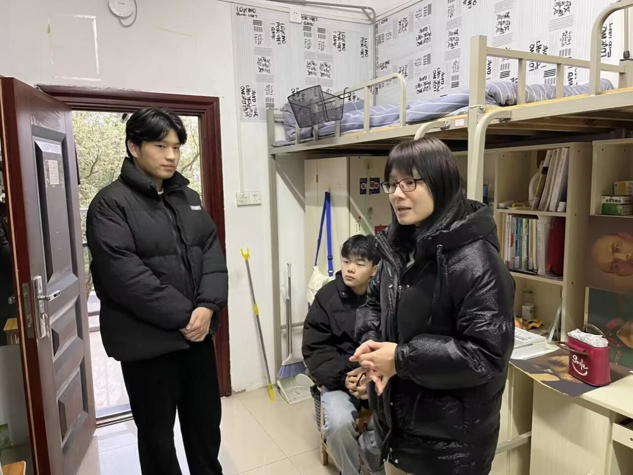 胡绍山详细询问了同学们新学期的生活安排、学习计划等,了解宿舍卫生、通风情况,检查水电设施是否良好,嘱咐大家要及时调整好生活作息,合理安排时间,同时提醒同学们气候多变,注意添衣保暖。
