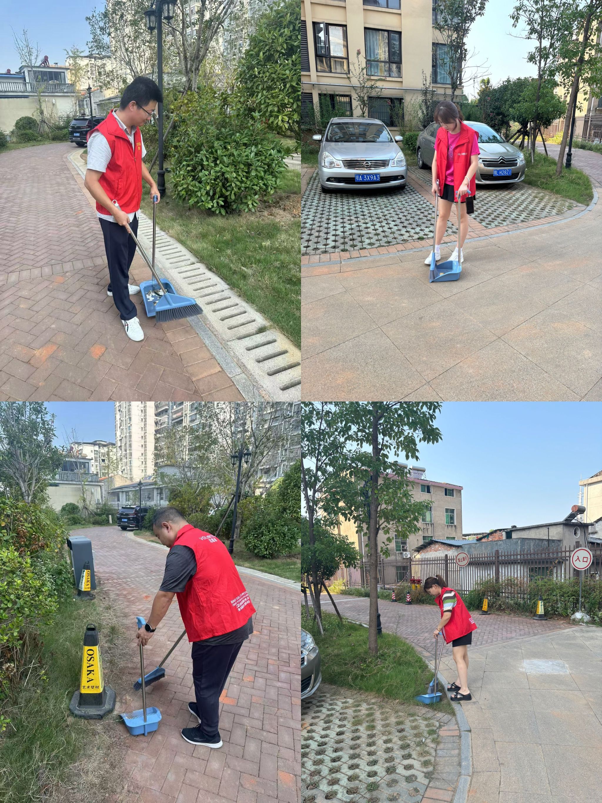图2 永利集团304官网员工党支部党员干部清扫小区垃圾