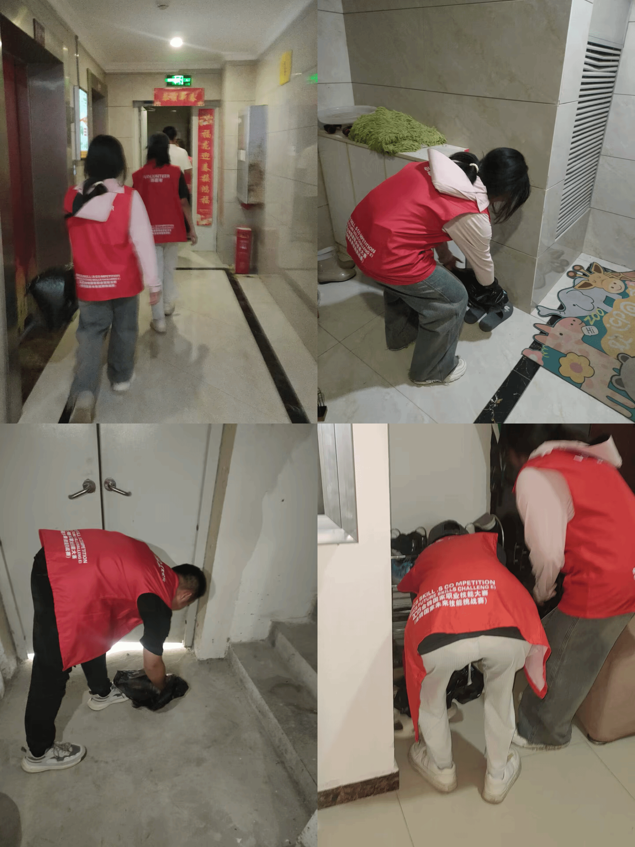 图3 永利集团304官网员工党支部党员干部带领“匠心”员工志愿者整理楼道