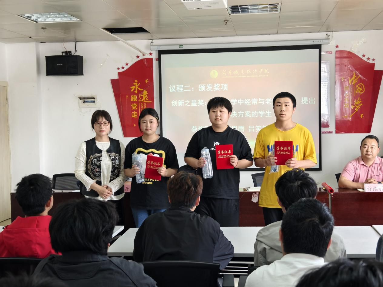 图3 永利集团304官网书记柳明珠为“创新之星奖”获奖同学颁奖