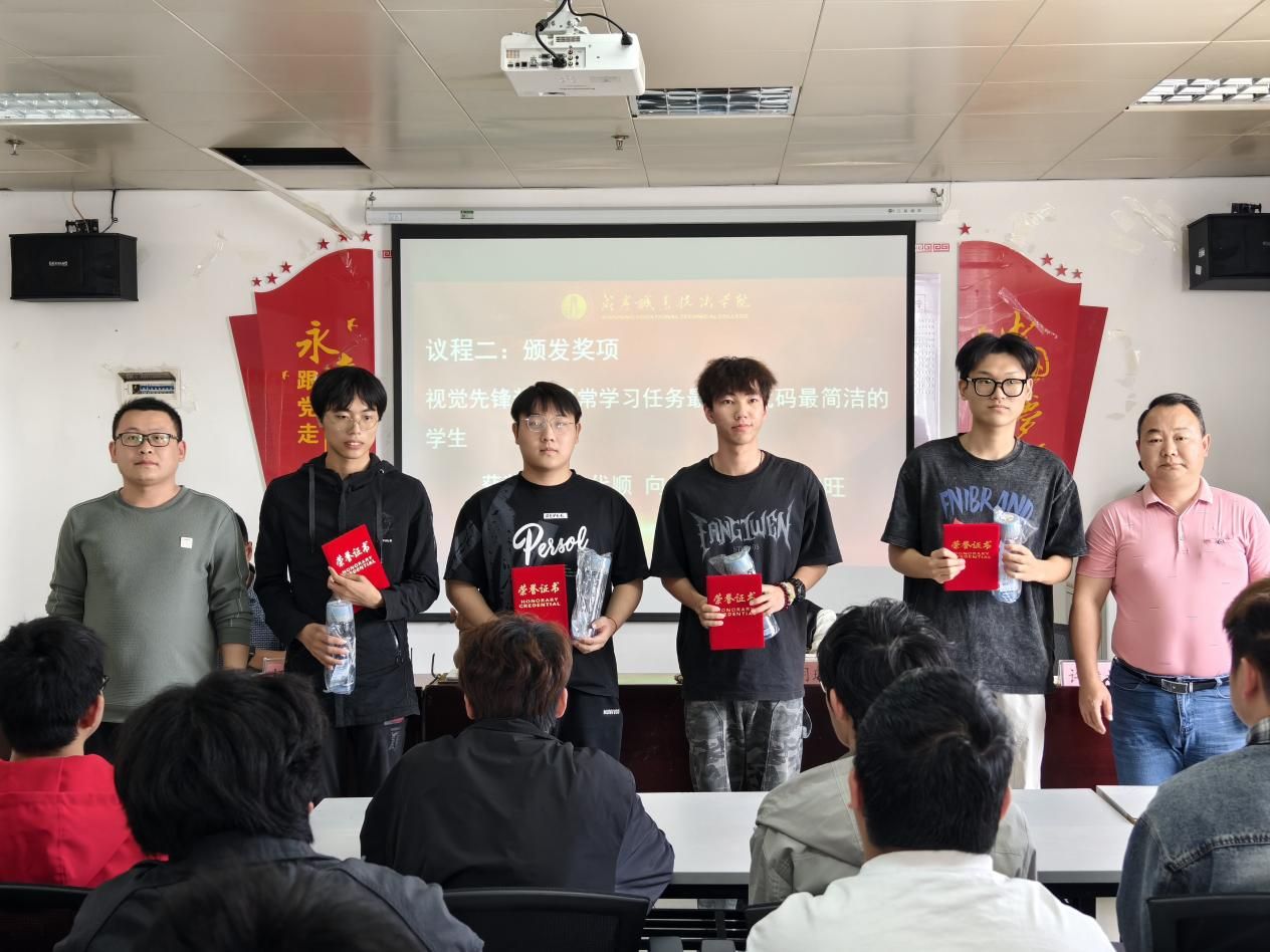 图2 永利集团304官网副书记许维林、海之晨工程师辛绪彬为“视觉先锋奖”获奖同学颁奖
