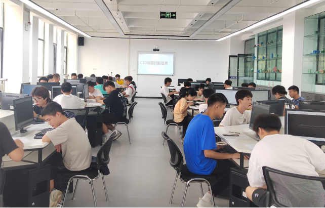 6月10日上午,在虚拟仿真中心601机房举行《机械制图》课程的AutoCAD技能抽测考核,从21级随机抽取的42名员工参加本次考核,考核要求在120分钟时间内完成规定的基本图形的绘制,重在考察员工对AutoCAD软件的熟练应用程度。考核过程中,同学们态度认真,神情专注,技法娴熟,大部分选手都能完成考核任务,且图形效果好。