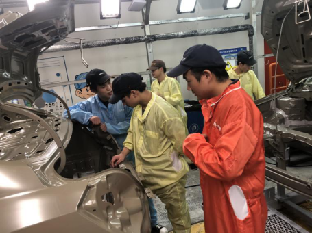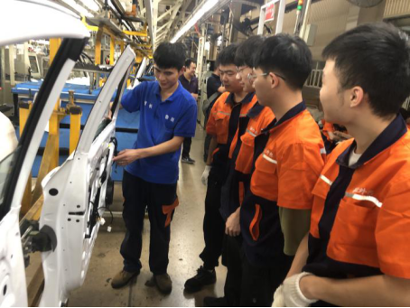 按照2018级新能源汽车技术专业现代学徒制人才培养方案要求,2020-2021第一学年将继续采取现代学徒制课程实训的方式开展学徒教学。本次培训的内容分为职业道德、企业文化、厂规厂纪、学徒制度、生产安全、岗位操作等环节。在完成上述培训项目并考核通过后,将班级同学分别安排在汽车涂装岗位和汽车总装岗位,并根据具体岗位中不同工位的要求,每3位学徒指定一名企业导师进行学徒实践。