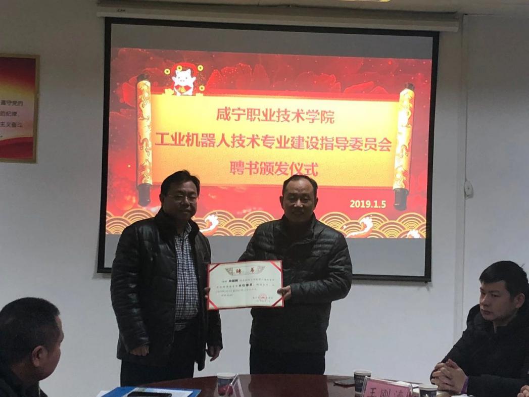 研讨会上,现场成立了工业机器人技术专业建设指导委员会,聘请湖北香城智能机电产业技术研究院有限公司副总经理周国鹏、苏州富强科技公司副总经理汪鹏为主任。