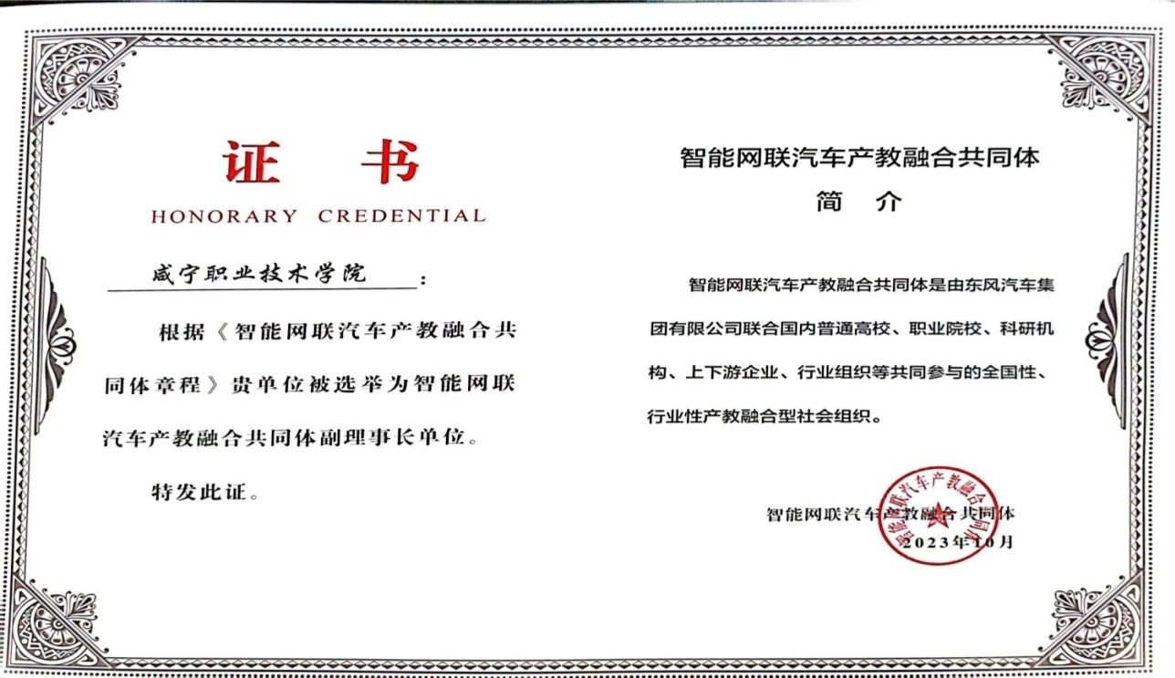 喜讯!公司荣获“智能网联汽车产教融合共同体”副理事长单位