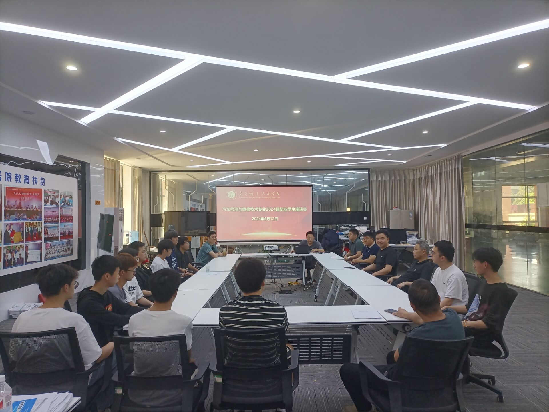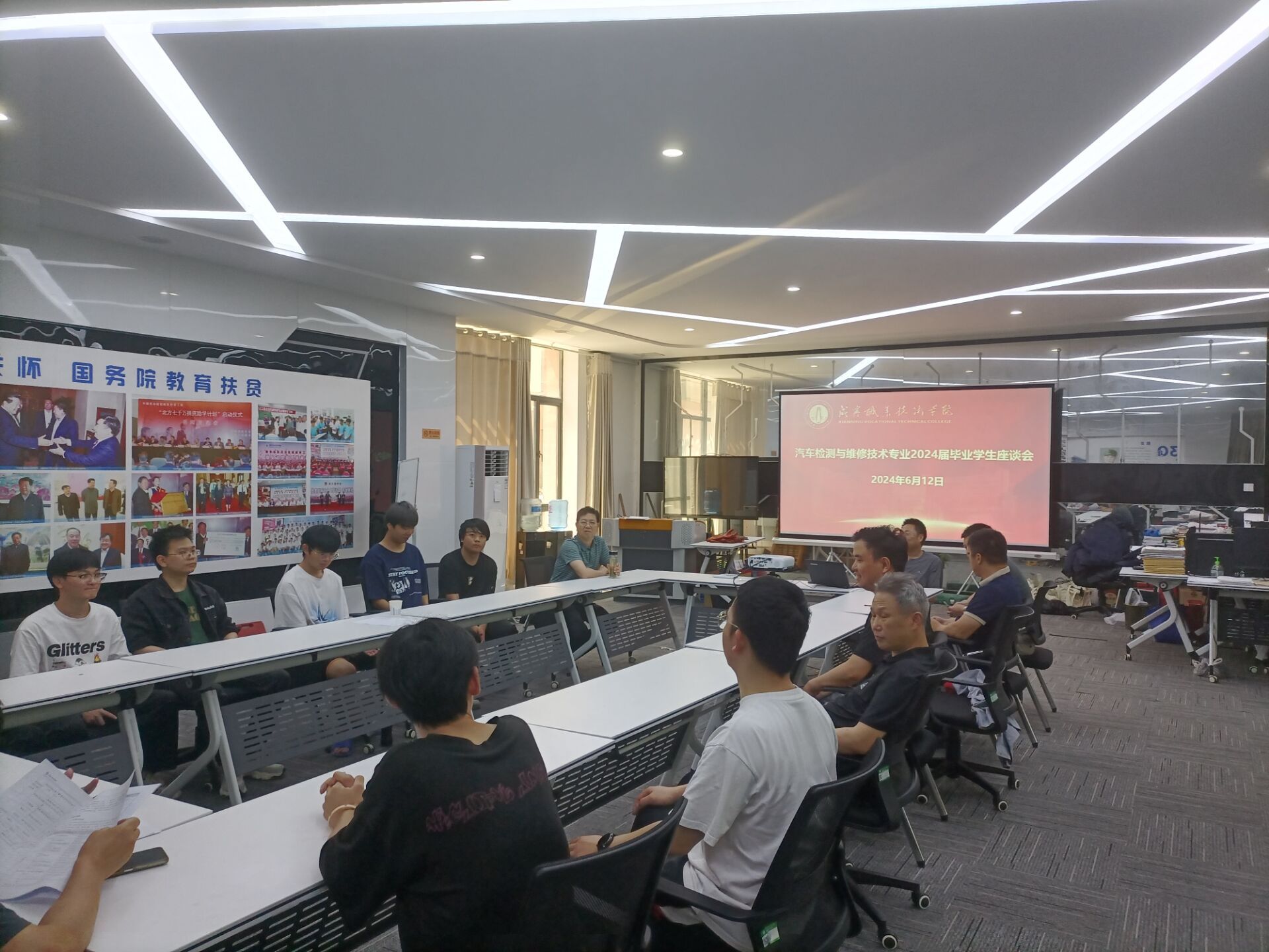 2024年6月14日周五下午,乘2024届毕业生集体返校之际,永利集团304官网汽车检测与维修教研室在汽车产业基地一楼举办了2024届毕业生座谈会。院领导、教师代表与众多优秀毕业生齐聚一堂,共同分享成长感悟与未来展望。