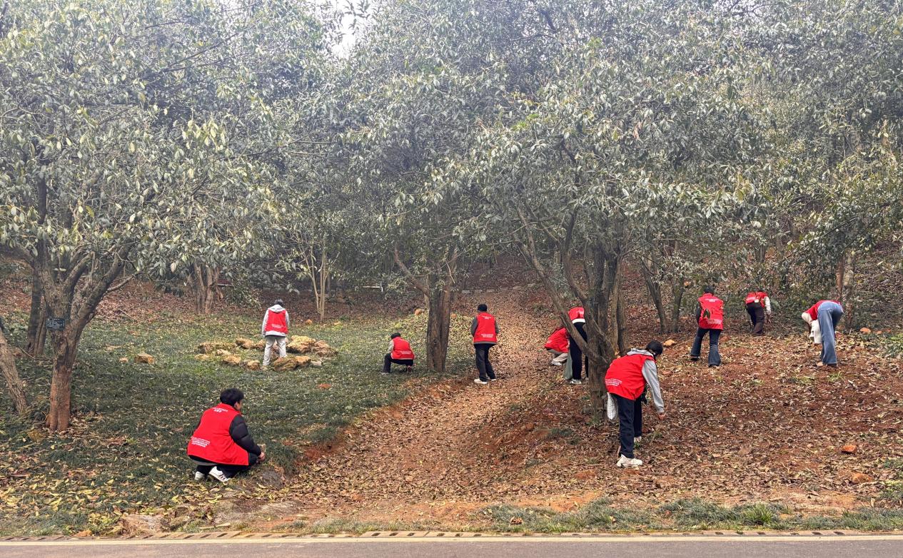 志愿者们身着统一的红色志愿马甲,手持垃圾袋等清洁工具,精神饱满地抵达公园。尽管初春微寒,却挡不住同学们服务的热情。在团总支应孔建老师简短动员后,大家迅速分组,按照预定区域开展垃圾清理工作。他们穿梭于林荫小道、草坪花坛,仔细搜寻被遗弃的塑料瓶、烟头、纸屑、食品包装袋等垃圾,不放过任何一个卫生死角。