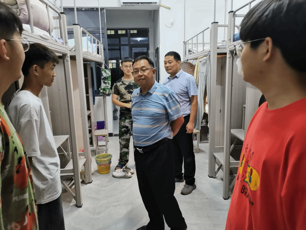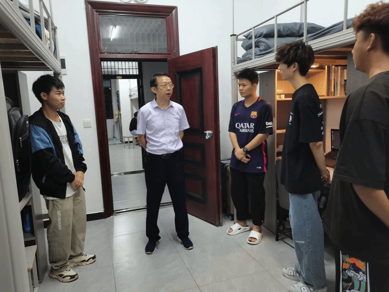 走访过程中,胡绍山与新生们亲切交谈,关心询问他们对校园环境、住宿、食堂等方面的感受,在了解到一些新生面对新环境、新挑战时存在一定问题时,耐心解答了同学们的各种困惑,并叮嘱年轻的孩子们尽快适应新的环境,照顾好自己,养成良好的作息习惯,加强体育锻炼,保持积极健康、乐观向上的生活态度。