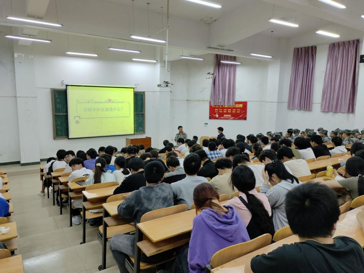 为了让同学们拥有良好的人际交往能力以及如何做一个友善的人,帮助他们正确看待人际关系,学会与人交往。3月31日晚七点,23级全体员工在励志楼开展以“学会‘友’好相处。做行‘善’少年”为主题的心理班会。