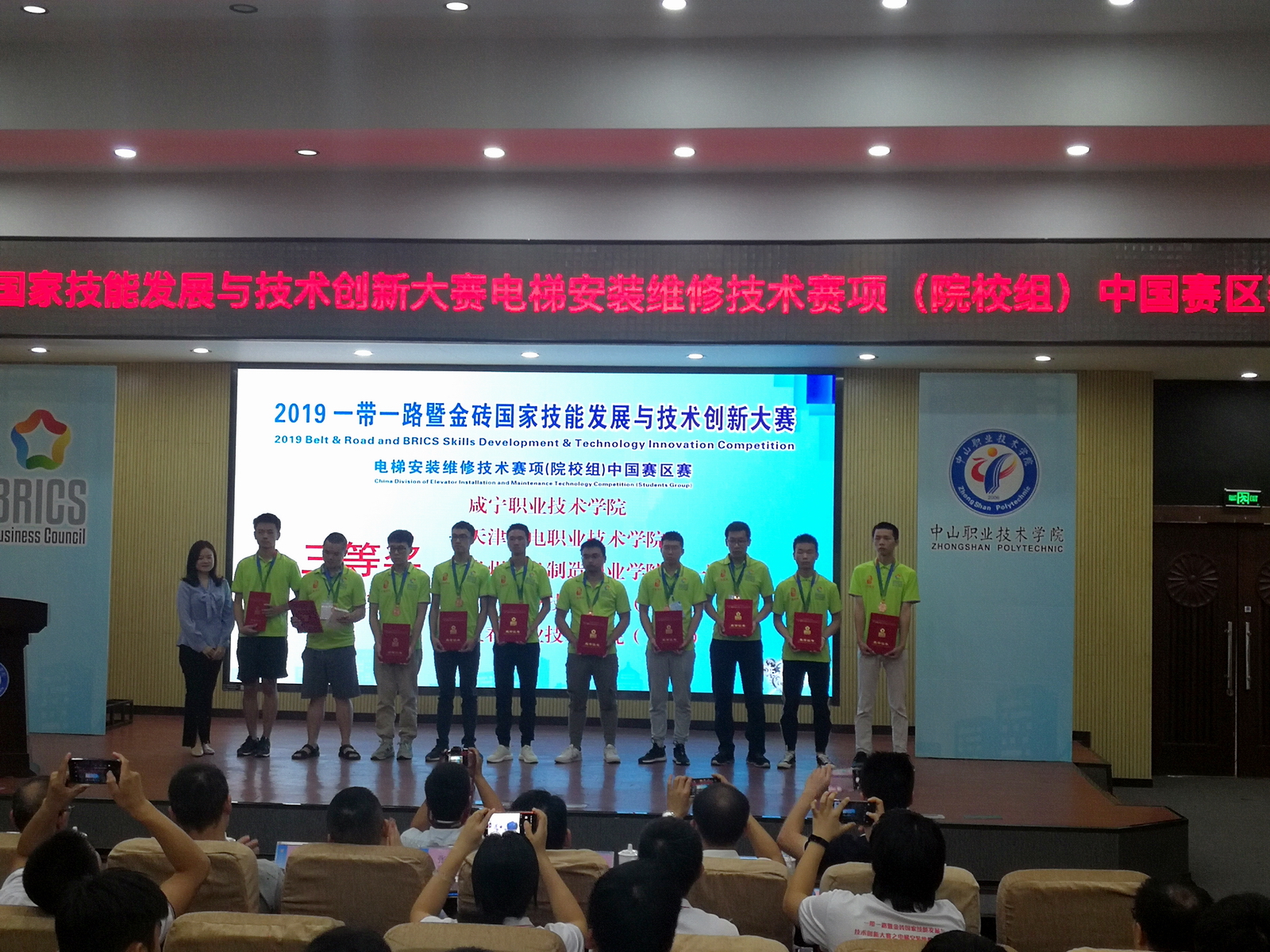 公司荣获“2019一带一路暨金砖国家技能发展与技术创新大赛之电梯安装维修赛项竞赛”国赛三等奖