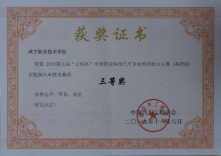 喜报:新能源、新突破——永利集团304官网教师罗易、黄浩在全国 汽车专业教师能力大赛中荣获三等奖