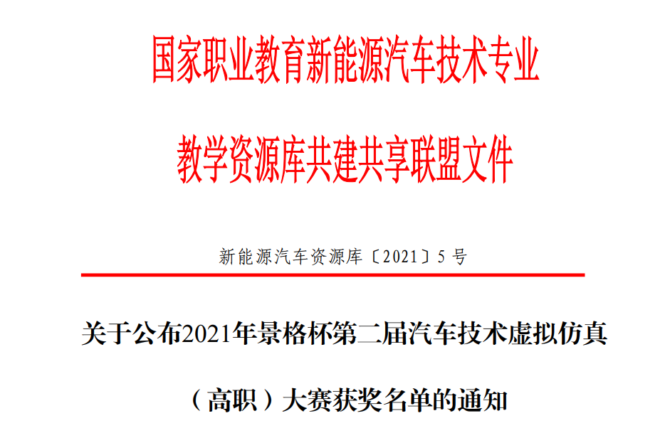 通过参与此次大赛,落实了教育部职业教育数字化创新在教学中的运用,推进虚拟仿真技术在汽车专业教学中的应用。为后期新能源汽车相关竞赛打下了坚实基础。