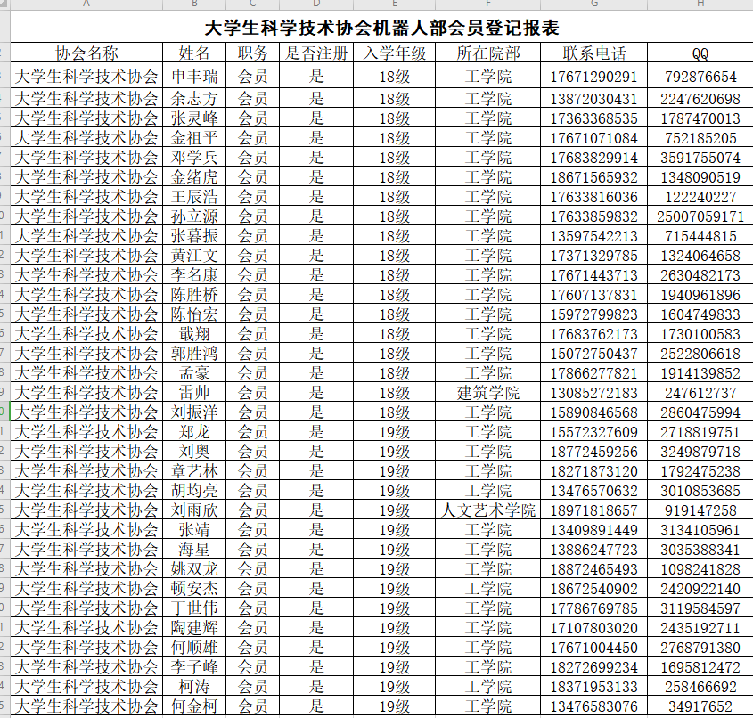 老员工科学技术协会机器人部会员登记报表
